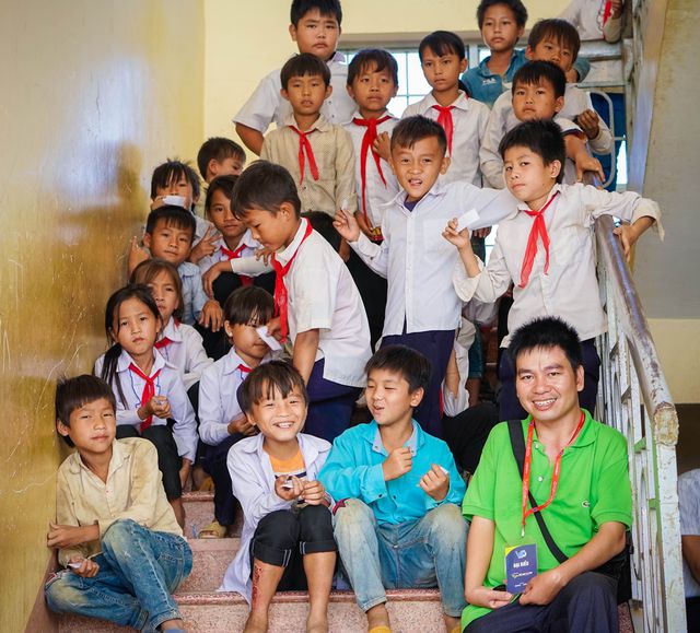 Anh Học và CLB tình nguyện Vòng tay yêu thương giúp nhiều em nhỏ có cơ hội đến trường.