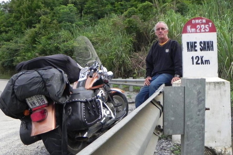 | Ông Mike Rinowski trong hành trình bằng xe máy ở Việt Nam. Ảnh: harleytracks.com |
