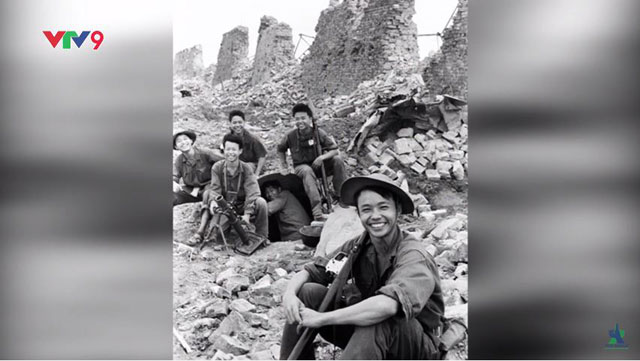 Giữa hoang tàn do bom đạn nơi chiến địa, các chiến sĩ vẫn lạc quan, tươi cười.