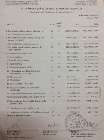 Trong năm 2015, lỗ thuần từ hoạt động kinh doanh MLMB là hơn 13 tỷ đồng.