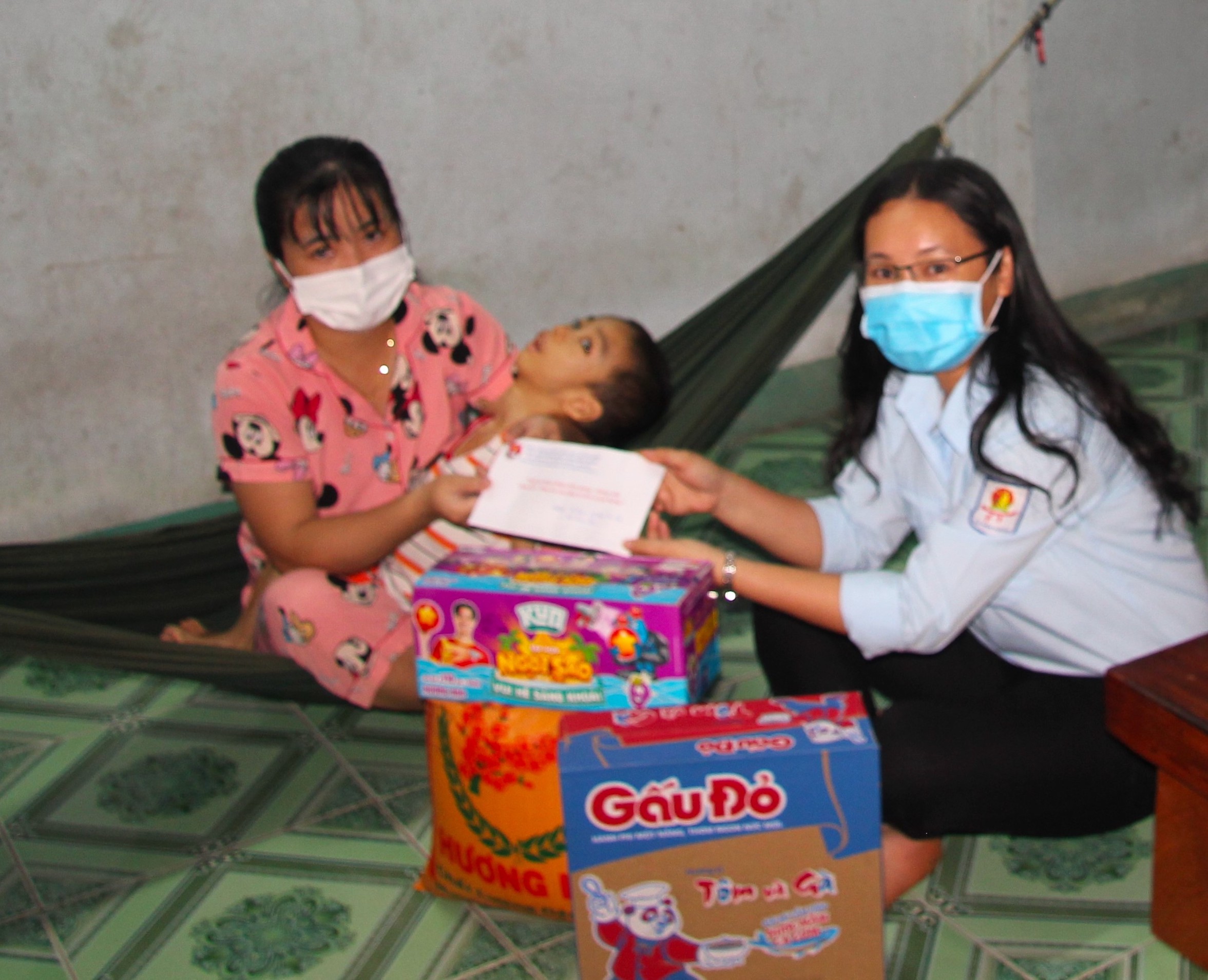 Ngoài ra, Hội đồng Đội tỉnh và Trung tâm Hoạt động Thanh thiếu nhi tỉnh đã đến thăm, tặng 1 phần quà cùng 2 triệu đồng cho gia đình em Đỗ Thành Long ở ấp 5, xã Minh Thành, huyện Chơn Thành. Em Long năm nay lên 9 tuổi, bị mắc bệnh bại não. Dù được gia đình chạy chữa nhưng bệnh của Long vẫn không khỏi mà luôn xanh xao, gầy gò, khó thở. Gia đình Long có 5 người, ba của Long làm công nhân để nuôi gia đình và bà nội già yếu còn mẹ Long ở nhà chăm sóc cho Long