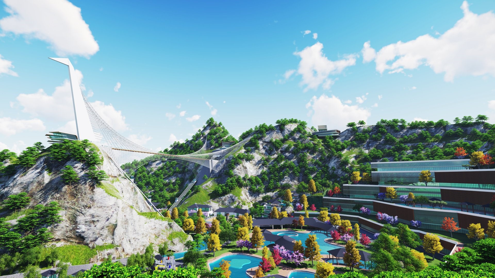 Phối cảnh công viên suối khoáng nóng thuộc hệ sinh thái onsen tại Quang Hanh của Sun Group.