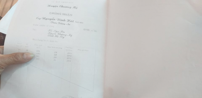 Nguồn gốc sử dụng đất và nhà cấp IV nêu trên của gia đình ông Thảo đã được ông Nguyễn Văn Lại, Trưởng thôn Tràng An, thị trấn Chúc Sơn, huyện Chương Mỹ, thành phố Hà Nội xác nhận " Thửa đất canh tác và đất tăng gia thêm từ năm 1986 đến nay không có tranh chấp là có thực".