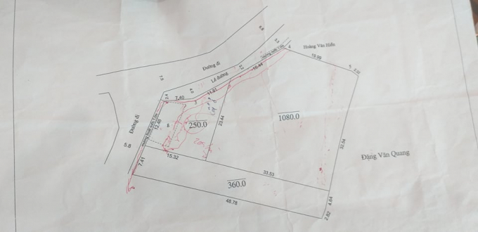 Sơ đồ thửa đất của hộ gia đình ông Hoàng Văn Thảo và bà Huê.