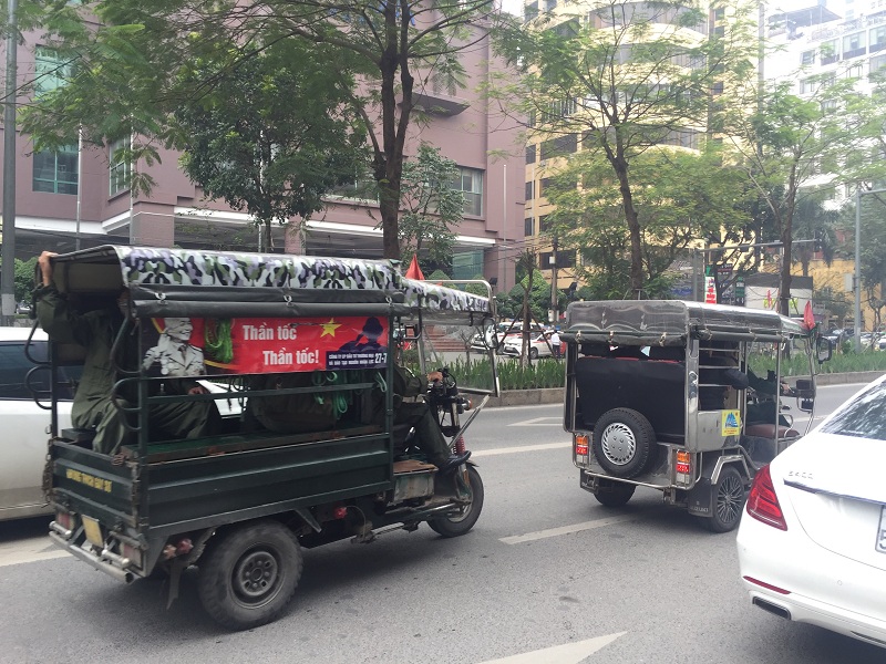 Các bác thương binh kéo tới rất đông bằng xe ba gác, thu hút sự quan tâm của người dân và lực lượng gìn giữ trật tự của phường.