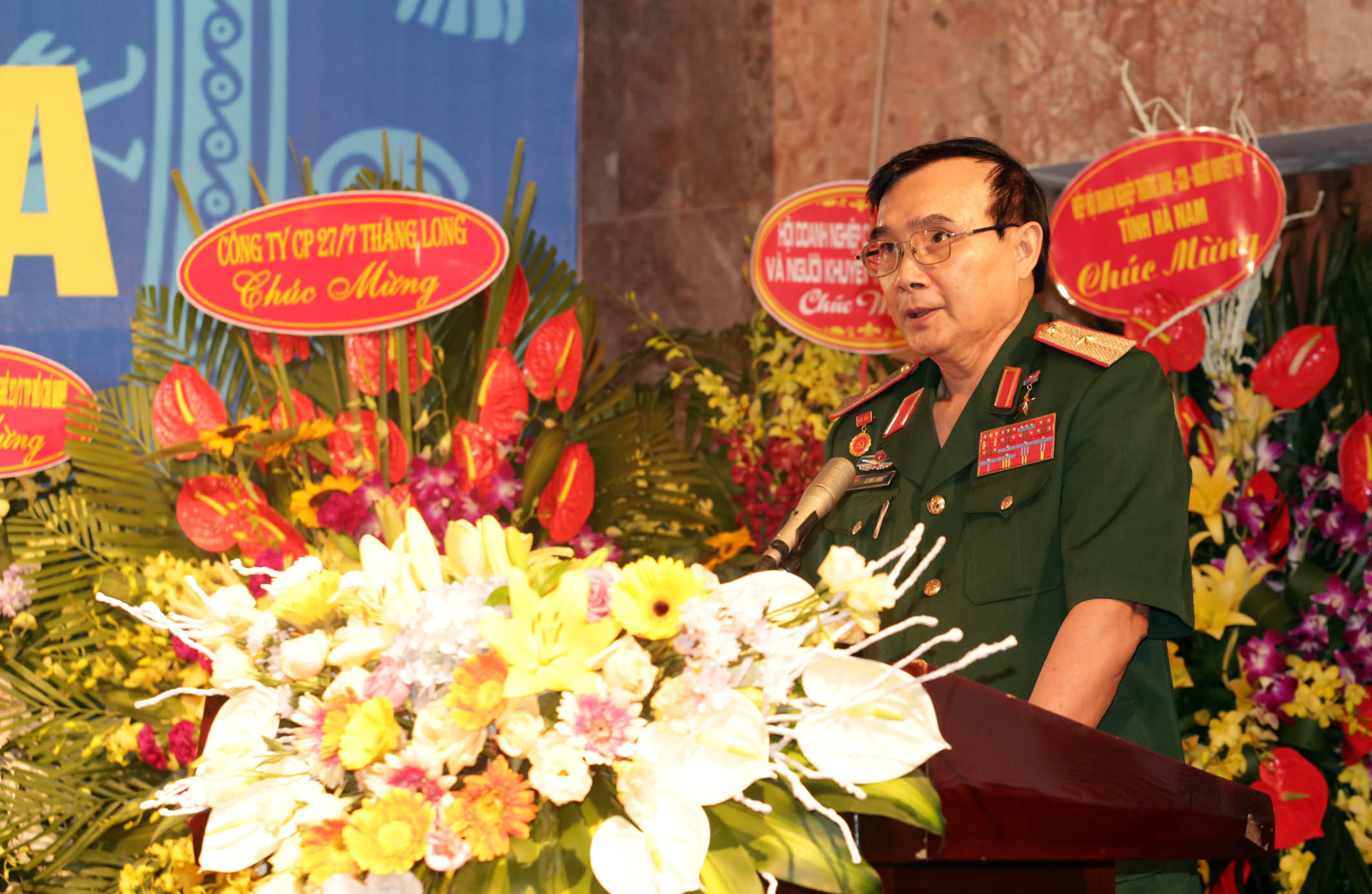 Chủ tịch Hiệp hội doanh nghiệp của Thương binh và Người khuyết tật Việt Nam - Thiếu tướng Lê Mã Lương báo cáo tóm tắt thành tích hoạt động của Hiệp hội trong 16 năm qua |