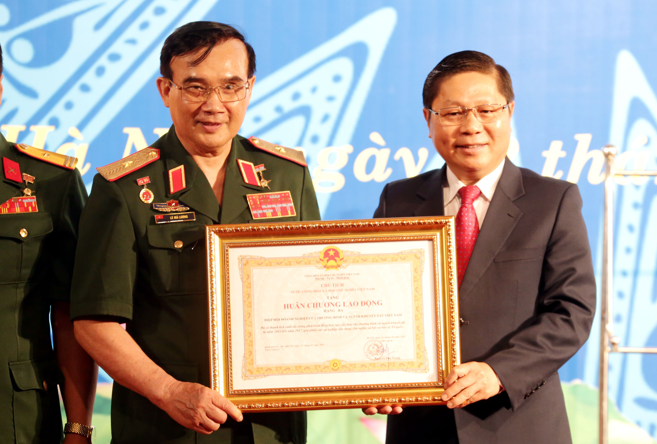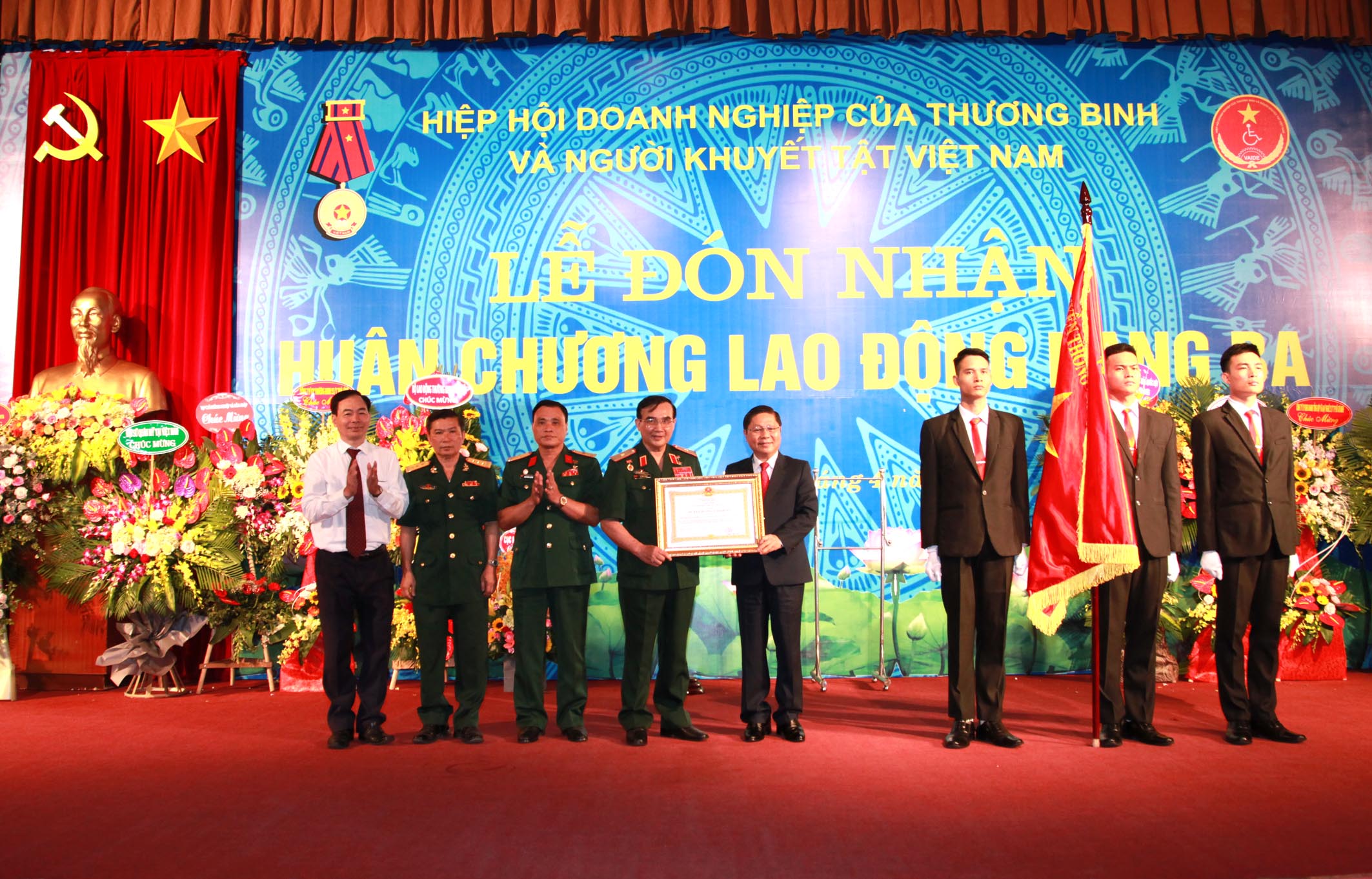 Thứ trưởng Bộ LĐ-TB&XH Lê Tấn Dũng (Thừa ủy quyền của Chủ tịch nước) trao Huân chương Lao động hạng 3 cho Hiệp hội doanh nghiệp của Thương binh và Người khuyết tật Việt Nam |