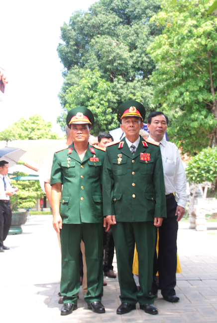 | Thiếu tướng Trần Vinh Quang - nguyên Thứ trưởng Bộ Lao động, Thương binh và Xã hội, Chủ tịch Hiệp hội, Anh hùng lao động Nguyễn Hồng Quảng - Phó Chủ tịch Hiệp hội, ông Đặng Văn Thanh - Phó Chủ tịch Hiệp hội trên đường vào Lăng viếng Bác |