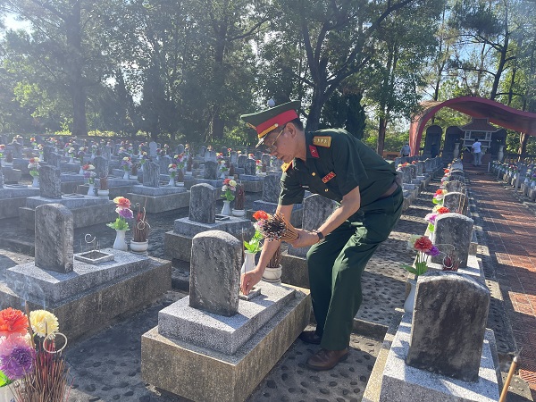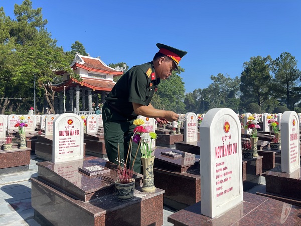 Những nén hương thơm được thắp trên phần mộ các anh hùng liệt sỹ tại Nghĩa trang Liệt sĩ quốc gia Trường Sơn.