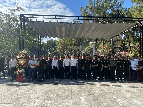 Sáng cùng ngày, Đoàn công tác đã đến dâng hương, tưởng nhớ, tri ân các Anh hùng liệt sĩ tại Nghĩa trang Liệt sĩ quốc gia Đường 9. Nghĩa trang Liệt sĩ quốc gia Đường 9 là nơi yên nghỉ vĩnh hằng của hơn 10.800 anh hùng, liệt sĩ thuộc bộ đội chủ lực, bộ đội địa phương, dân quân du kích và thanh niên xung phong đã từng chiến đấu, phục vụ chiến đấu trên mặt trận Đường 9 và trên đất Lào trong suốt cuộc kháng chiến chống Mỹ.