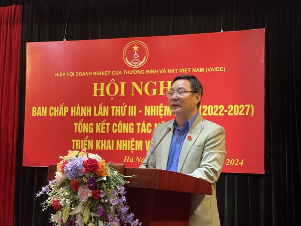 Phát biểu khai mạc, ông Trần Hồng Quảng, Chủ tịch Hiệp hội Doanh nghiệp của Thương binh và Người khuyết tật Việt Nam đánh giá cao tinh thần trách nhiệm cao trước BCH và các đơn vị hội viên, các đồng chí Ủy viên BCH Hiệp hội và các đại biểu dự hội nghị sẽ phát huy dân chủ, trí tuệ, kinh nghiệm thực tiễn, tập trung nghiên cứu, thảo luận, phân tích, đánh giá những kết quả đạt được, những tồn tại, hạn chế, yếu kém và thống nhất các mục tiêu, nhiệm vụ, giải pháp khả thi, phù hợp với thực tiễn để lãnh đạo, chỉ đạo triển khai thực hiện hiệu quả trong năm 2024.