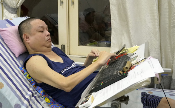 | Ông Phạm Thanh Sơn làm việc trên giường - Ảnh: ĐÔNG HÀ |
