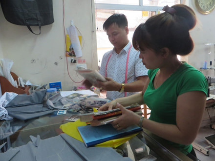 | Phúc Danh đang làm việc tại hiệu may. |
