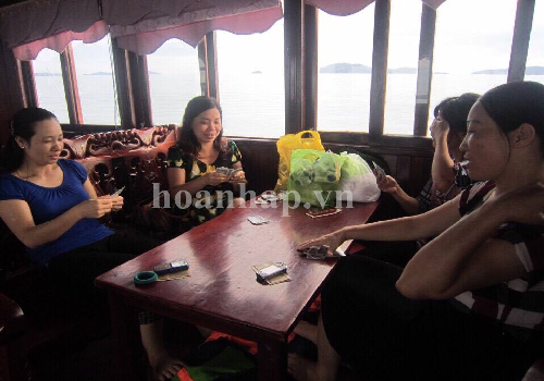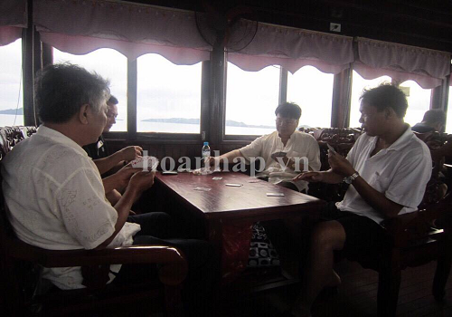 Ấy thế nhưng, theo đơn tố cáo của ông Hoàng Văn Tiếp- cán bộ Trường Cao đẳng Sư phạm Hưng Yên thì ông Ngô Văn Tuấn- Bí thư Đảng ủy, Hiệu trưởng Trường Cao đẳng Sư phạm Hưng Yên, người đứng đầu một đơn vị giáo dục công lập của tỉnh trong chuyến đi thăm quan, học tập kinh nghiệm tại Quảng Ninh đã có hành vi rủ rê một số cán bộ, giáo viên của nhà trường tổ chức đánh bài (tá lả) ăn tiền. Dưới đây là một số hình ảnh ông Ngô Văn Tuấn cùng một số cán bộ, giáo viên đang sát phạt lẫn nhau.