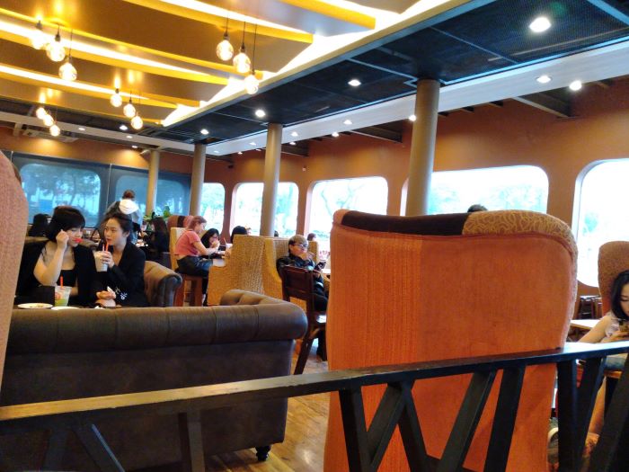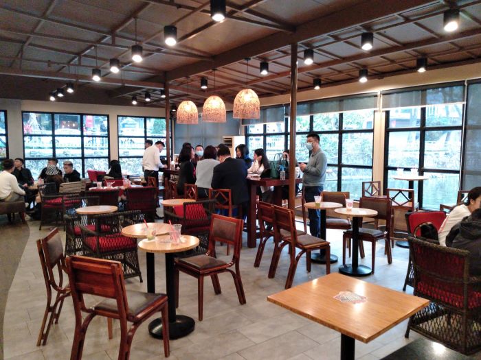 Trong cửa hàng rất nhiều người không đeo khẩu trang, tụ tập đông người ngồi uống cafe, không đảm bảo giãn cách (giãn cách tối thiểu 2 m giữa người với người hoặc giữ khoảng cách tối thiểu 1 m và có tấm chắn giữa các vị trí ngồi, không sử dụng đồ chung..).