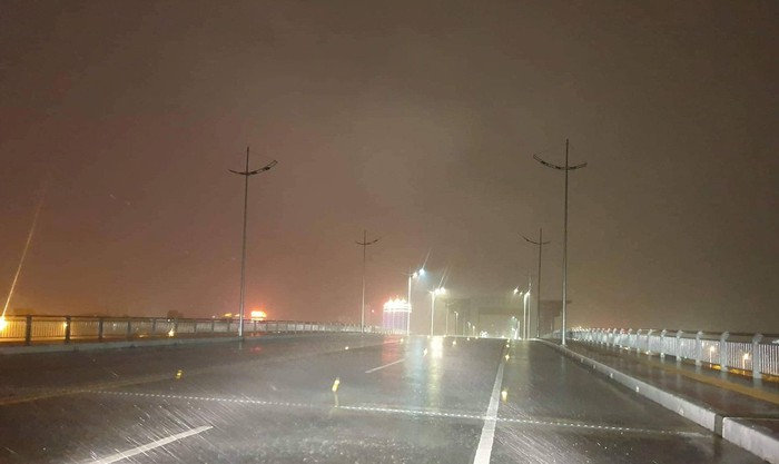 Vào 19h ngày 2/8, vị trí tâm bão số 3 ở vào khoảng 21,4 độ Vĩ Bắc; 108,4 độ Kinh Đông; ngay phía Đông Móng Cái (Quảng Ninh). Do ảnh hưởng của bão tại Móng Cái có mưa và gió giật. Ảnh chụp trên cầu Bắc Luân 2.