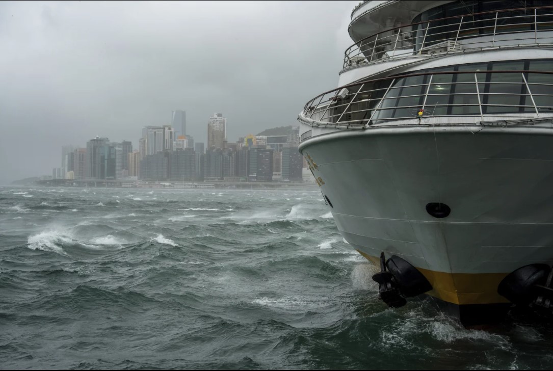 Sóng được nhìn thấy gần Cảng Victoria sau cơn bão Wipha, ở Hồng Kông, Chủ Nhật, ngày 20 tháng 7 năm 2025. (Ảnh AP/Vernon Yuen)