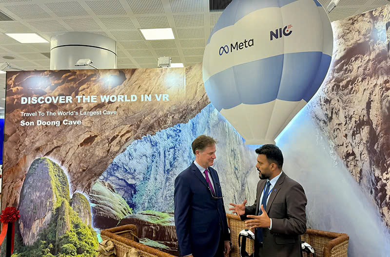 Tại gian hàng, ông Nick Clegg, Chủ tịch đối ngoại toàn cầu của Meta và ông Marc E. Knapper, Đại sứ Hoa Kỳ tại Việt Nam cùng các đại biểu, khách mời đã trực tiếp trải nghiệm tour thực tế ảo Sơn Đoòng. Khi trải nghiệm sản phẩm du lịch này, khách có thể cảm nhận chân thật như đang đứng trong lòng hang động lớn nhất thế giới, giữa những khối thạch nhũ khổng lồ, nghe tiếng gió rít qua các khe đá và tận mắt chứng kiến vẻ đẹp kỳ ảo của thiên nhiên.