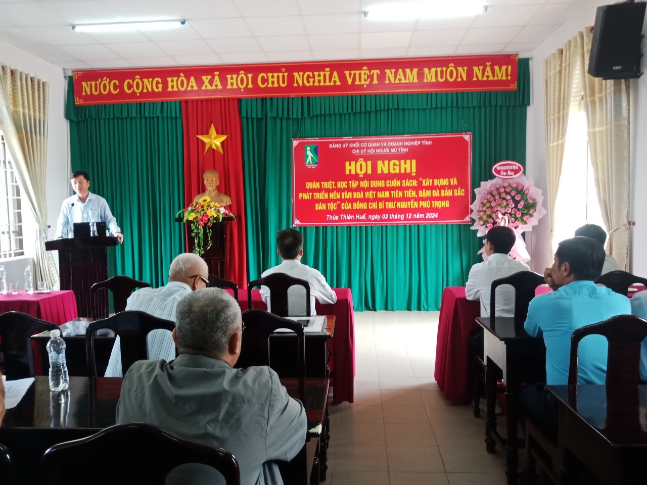 Quang cảnh Hội nghị quán triệt, học tập nội dung cuốn sách “Xây dựng và phát triển nền văn hóa Việt Nam tiên tiến, đậm đà bản sắc dân tộc” của cố Tổng Bí thư Nguyễn Phú Trọng