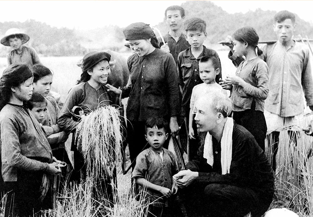 | Chủ tịch Hồ Chí Minh thăm đồng bào Hùng Sơn, xã Phục Linh, huyện Đại Từ, tỉnh Thái Nguyên (1954) - Ảnh: Tư liệu |