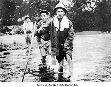 | Chủ tịch Hồ Chí Minh trong một lần đi công tác tại chiến khu. Ảnh tư liệu |
