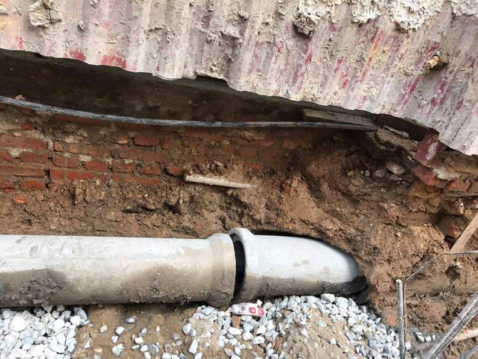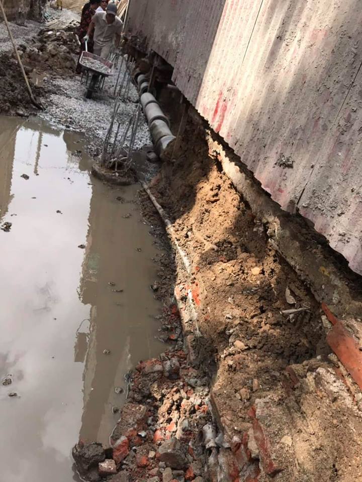 | Phần móng của công trình 143a Chùa Hàng đào sâu gây sạt lở, vỡ ống thoát nước gây nguy hiểm tới tính mạng, tinh thần của người dân. |