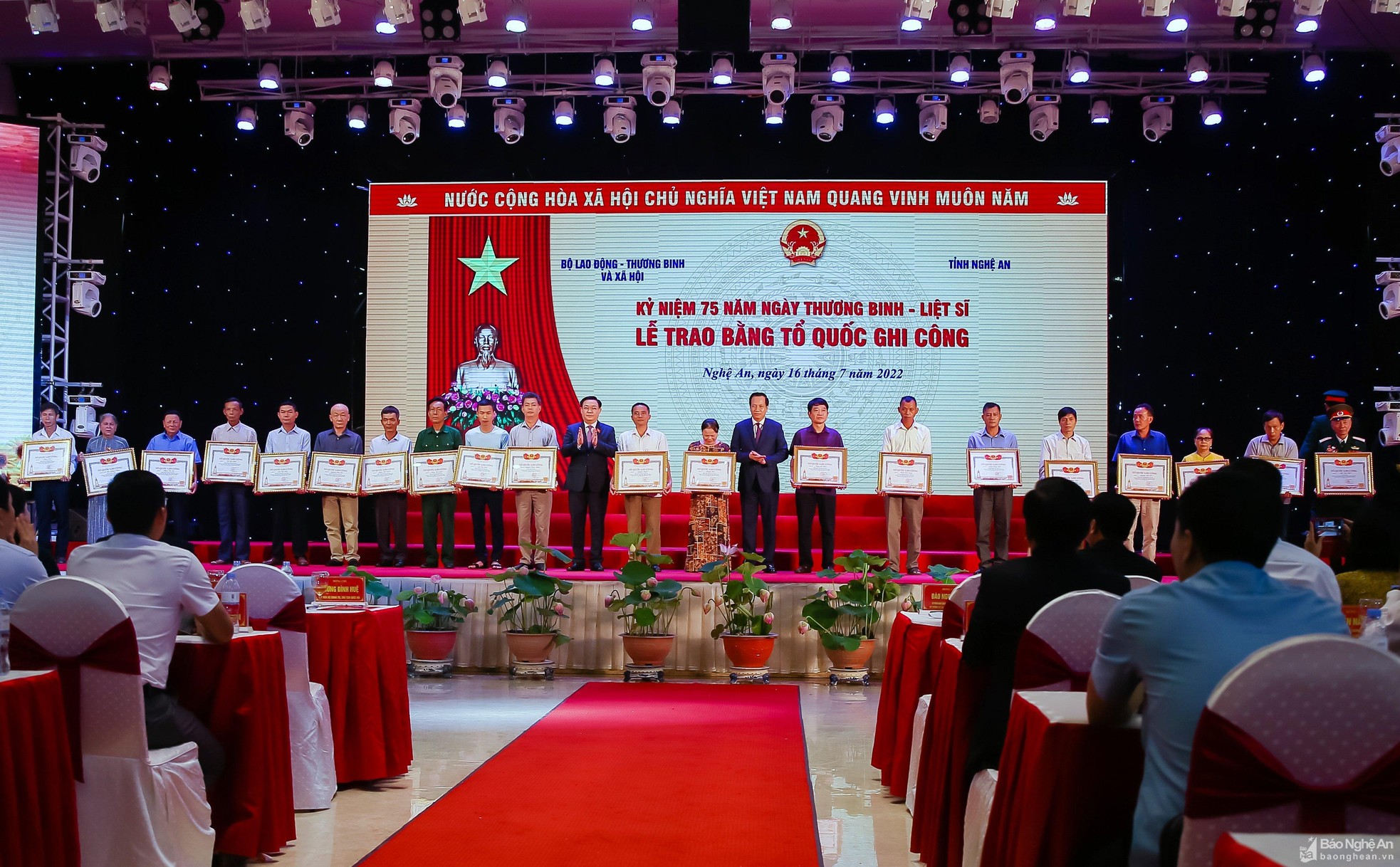 Chủ tịch Quốc hội Vương Đình Huệ, Bộ trưởng LĐTB-XH Đào Ngọc Dung trao Bằng Tổ quốc ghi công năm 2022 cho các thân nhân liệt sỹ