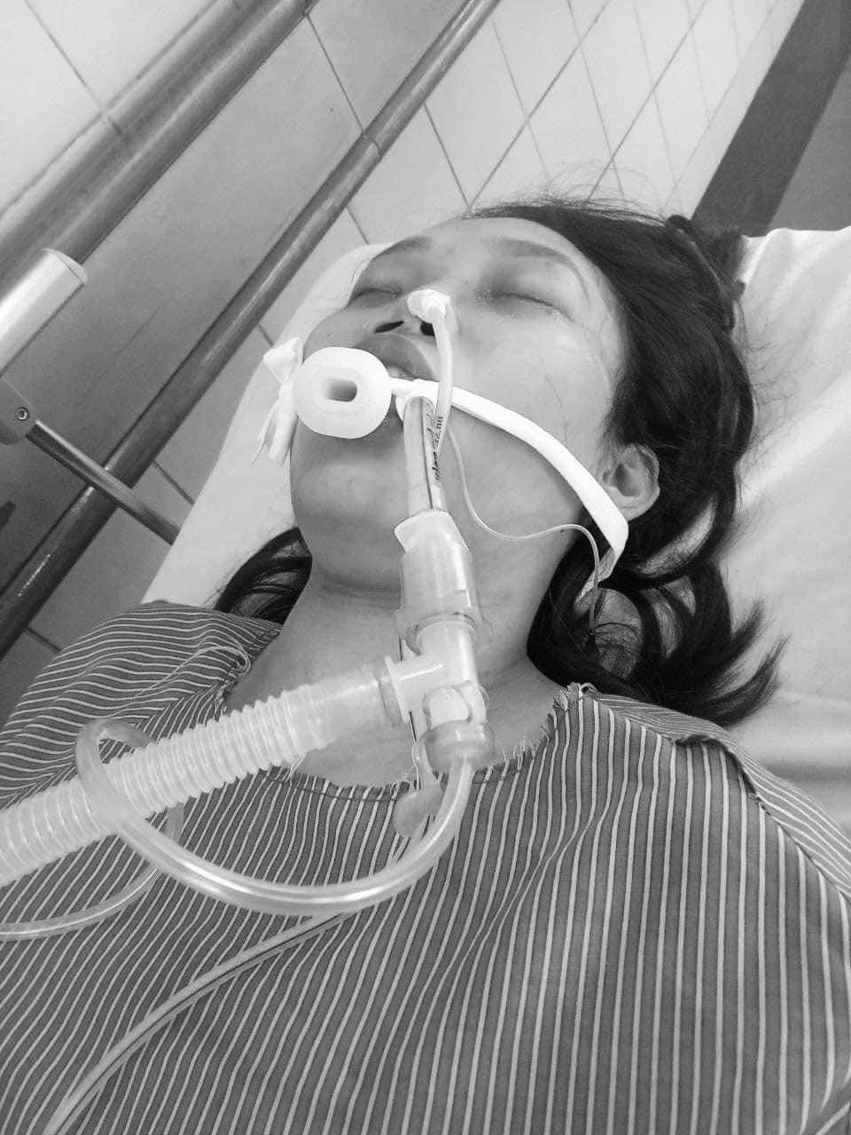 Hình ảnh chị Phạm Thị Quỳnh Trang nằm tại phòng điều trị, bệnh viện Bạch Mai (ảnh do gia đình cung cấp)