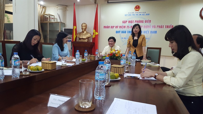 Đây là thông tin Giám đốc Quỹ Bảo trợ trẻ em Việt Nam (BTTEVN) Hoàng Văn Tiến cho biết trong cuộc gặp gỡ phóng viên nhân kỷ niệm 25 năm xây dựng và phát triển Quỹ BTTEVN tổ chức ngày 18/4, tại Hà Nội. Thứ trưởng Đào Hồng Lan tham dự và phát biểu tại buổi gặp mặt phóng viên.