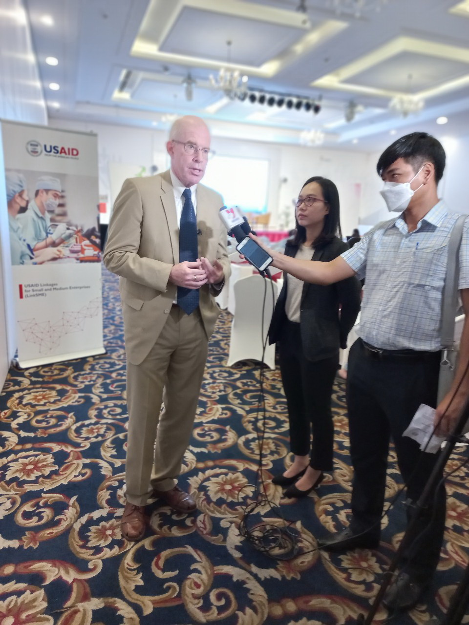 Ông Daniel Fitzpatrick, Giám đốc Dự án Thúc đẩy cải cách và nâng cao năng lực kết nối DNNVV, thuộc USAID trả lời phỏng vấn tại hội thảo