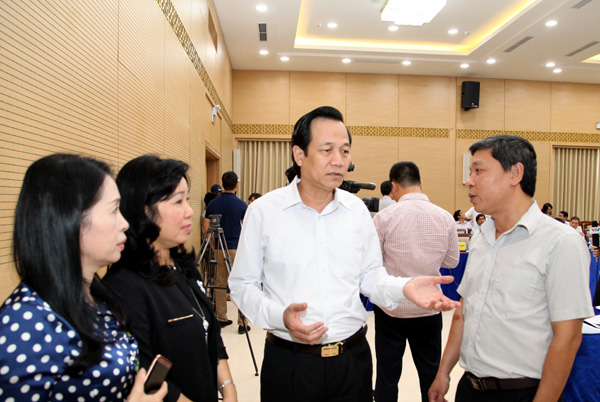 Phó Thủ tướng và Bộ trưởng Đào Ngọc Dung trao đổi với các đại biểu.