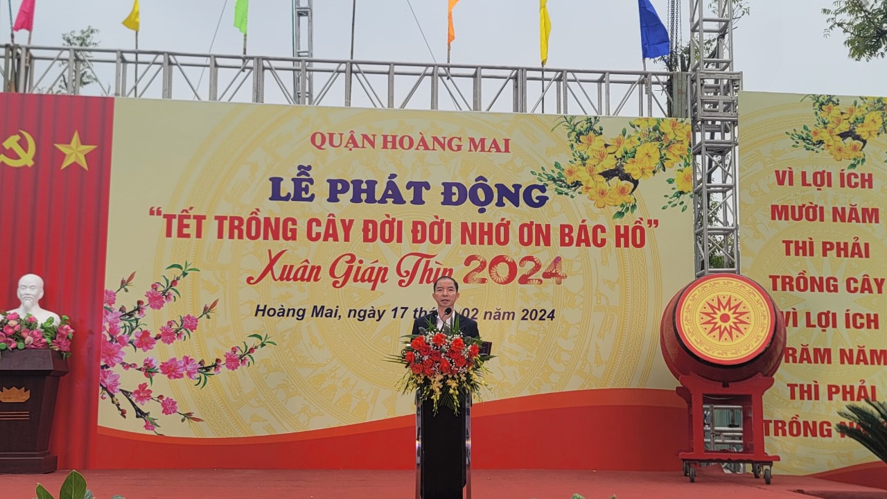 Phát biểu tại buổi Lễ ông Nguyễn Minh Tâm - Phó Bí thư Quận ủy, Chủ tịch UBND Quận Hoàng Mai cho biết: Ngày 28/11/1959, Chủ tịch Hồ Chí Minh viết bài “Tết trồng cây” đăng trên Báo Nhân Dân, kêu gọi trồng cây, trồng rừng và phát động “Tết trồng cây” đầu tiên từ Tết Nguyên đán Canh Tý 1960. Từ đó đến nay, hằng năm, các cấp, các ngành và nhân dân cả nước đã nhiệt liệt hưởng ứng, tham gia tích cực phong trào trồng cây, trồng rừng, bảo vệ rừng để “làm cho đất nước càng ngày càng xuân” như mong ước của Bác.