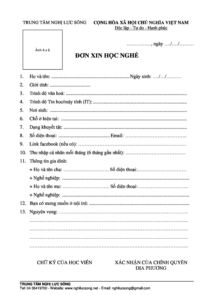 - 01 đơn xin học theo mẫu (ảnh kèm theo)