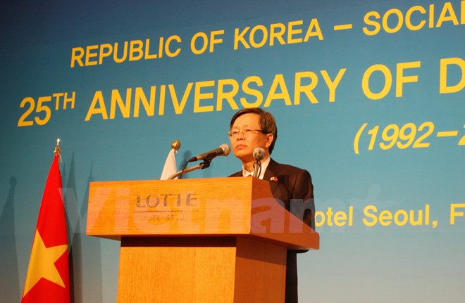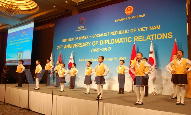 Ngày 8/2, tại thủ đô Seoul của Hàn Quốc, Đại sứ quán Việt Nam tại Hàn Quốc và Bộ Ngoại giao Hàn Quốc đã đồng tổ chức buổi lễ chào mừng 25 năm quan hệ ngoại giao Việt Nam-Hàn Quốc.