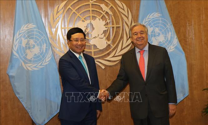 | Phó Thủ tướng, Bộ trưởng Ngoại giao Phạm Bình Minh gặp Tổng thư ký Liên hợp quốc Antonio Guterres. |