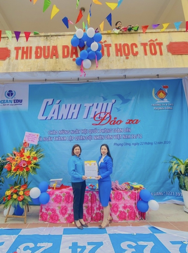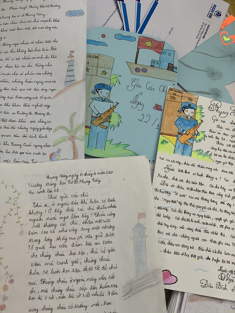 Bà Nhữ Tú Trang – GĐ Hệ thống Anh ngữ Quốc tế Ocean Edu chi nhánh Văn Giang chia sẻ: “Hệ thống Anh ngữ Ocean Edu Văn Giang phối hợp cùng với nhà trường tổ chức chương trình này với mong muốn góp phần giúp cho các em học sinh nhận thức, gìn giữ từng tấc đất, chủ quyền biển đảo thiêng liêng mà ông cha ta để lại. Thêm vào đó, chương trình này sẽ giúp các em thể hiện được tình yêu với quê hương biển đảo và đặc biệt là cảm ơn sự hi sinh của các chiến sĩ ngày đêm canh gác bảo vệ chủ quyền cho quê hương Việt Nam. Những nét chữ, những tình yêu thương được gửi gắm trong từng cánh thư và bức thiệp sẽ là nguồn tiếp sức mạnh mẽ cho những chiến sĩ Hải quân đang ngày đêm canh giữ biển trời thiêng liêng của Tổ Quốc.”