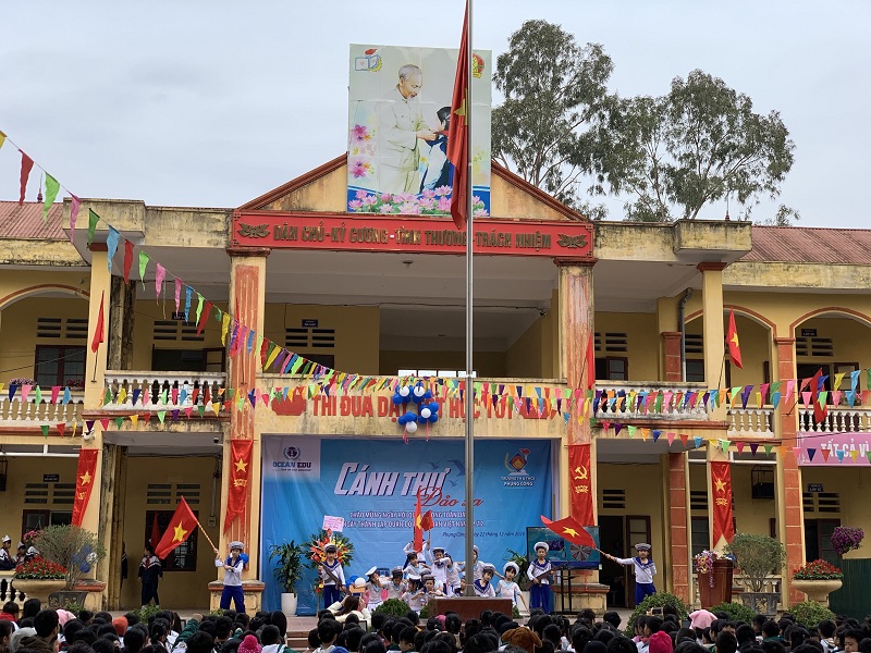 Thầy cô hệ thống Anh ngữ quốc tế Ocean Edu Văn Giang và BGH, học sinh Trường TH&THCS Phụng Công.