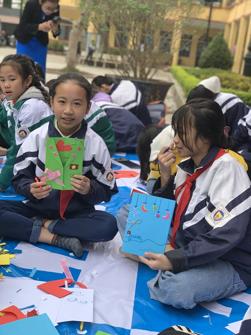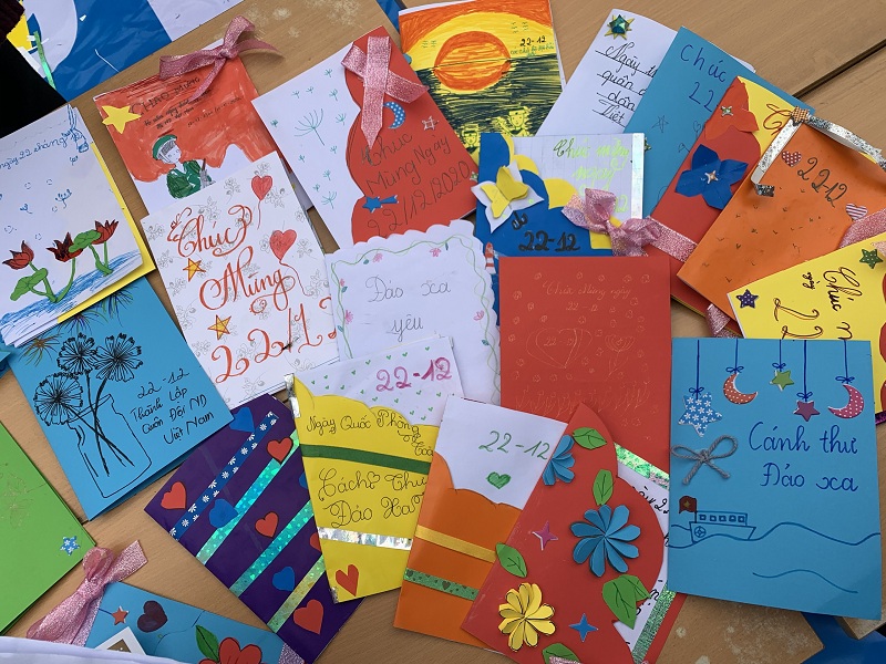Tham gia chương trình trải nghiệm, các em được giao lưu, tìm hiểu về truyền thống vẻ vang của QĐND Việt Nam anh hùng, giao lưu Tiếng Anh với giáo viên nước ngoài của Hệ thống Anh ngữ Quốc tế Ocean Edu. Phần hồi hộp nhất là thi làm thiếp tại sân khấu. Có 30 em đại diện cho học sinh từ lớp 3 đến lớp 9 tham gia làm thiệp với chủ đề 22/12.