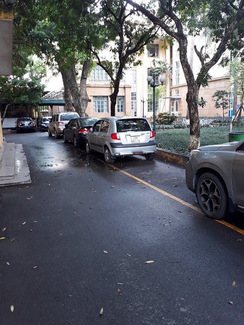 Sân Học viện Ngân hàng trở thành bãi trông giữ xe không phép từ lâu nay