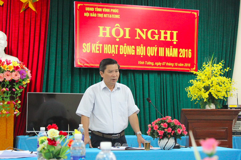 Mở đầu buổi Hội nghị, ông Đặng Huy Hảo - Chủ tịch Hội bảo trợ NTT&TEMC tỉnh Vĩnh Phúc đã tổng kết những thành tích, kết quả trong 9 tháng đầu năm 2016, bên cạnh đó nêu ra những tồn tại cần khắc phục và đề ra phương hướng, kế hoạch hoạt động trong quý IV năm 2016.