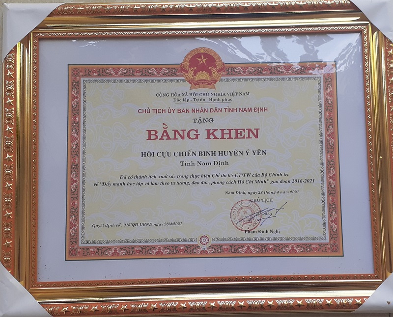 Hội CCB huyện Ý Yên đã được tặng thưởng nhiều bằng khen, giấy khen từ các các cấp, lãnh đạo tỉnh Nam Định.