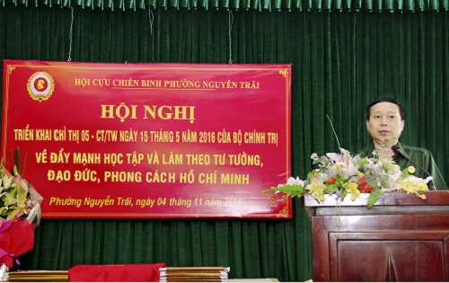 Trao đổi với chúng tôi, đồng chí Thượng tá Nguyễn Thành Hưng, Chủ tịch Hội CCB phường Nguyễn Trãi cho biết, hội CCB phường Nguyễn Trãi chúng tôi những năm gần đây đã có những chuyển biến mạnh mẽ, cán bộ, hội viên CCB luôn phát huy được bản chất truyền thống “Bộ đội Cụ Hồ”, đoàn kết, thống nhất thực hiện thắng lợi nhiệm vụ công tác Hội và nhiệm vụ chính trị của địa phương. Một trong những động lực tạo nên sự chuyển biến mạnh mẽ đó là do Hội đã triển khai sâu rộng trong toàn thể cán bộ, hội viên chỉ thị Số: 03-CT/TW ngày 14 tháng 5 năm 2011 của Bộ chính trị “về tiếp tục đẩy mạnh việc học tập và làm theo tấm gương đạo đức Hồ Chí Minh”, và triển khai chỉ thị số 05-CT/TW ngày 5/5/2016 của bộ chính trị về “Đẩy mạnh học tập, làm theo tư tưởng, đạo đức phong cách Hồ Chí Minh”. Như để minh chứng cho kết quả mà Hội đã đạt được. Ngược lại thời gian, đồng chí tâm sự: