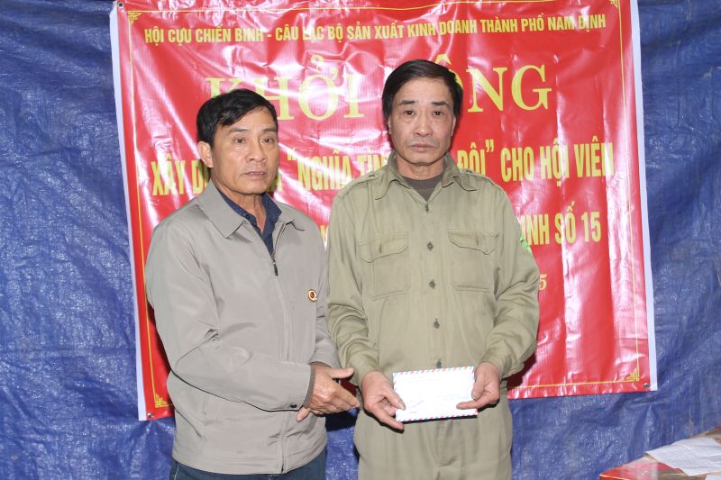 Hội viên CCB Nguyễn Duy Cường sinh năm 1966, là bộ đội xuất ngũ, không có lương hưu, bị đau ốm thường xuyên, con gái lớn đang học đại học, con trai đang học nghề, vợ không có việc làm. Căn hộ gia đình đang sinh sống trong khu tập thể Nhà máy Dệt được xây dựng từ những năm 1970 đến nay đã bị hư hỏng, dột nát rất nghiêm trọng. Do hoàn cảnh khó khăn, gia đình không có điều kiện sửa chữa, nâng cấp nhà ở. Qua rà soát, Hội CCB thành phố Nam Định, CLB Sản xuất kinh doanh Hội CCB thành phố Nam Định đã phối hợp hỗ trợ xây nhà mới cho hội viên Nguyễn Duy Cường.