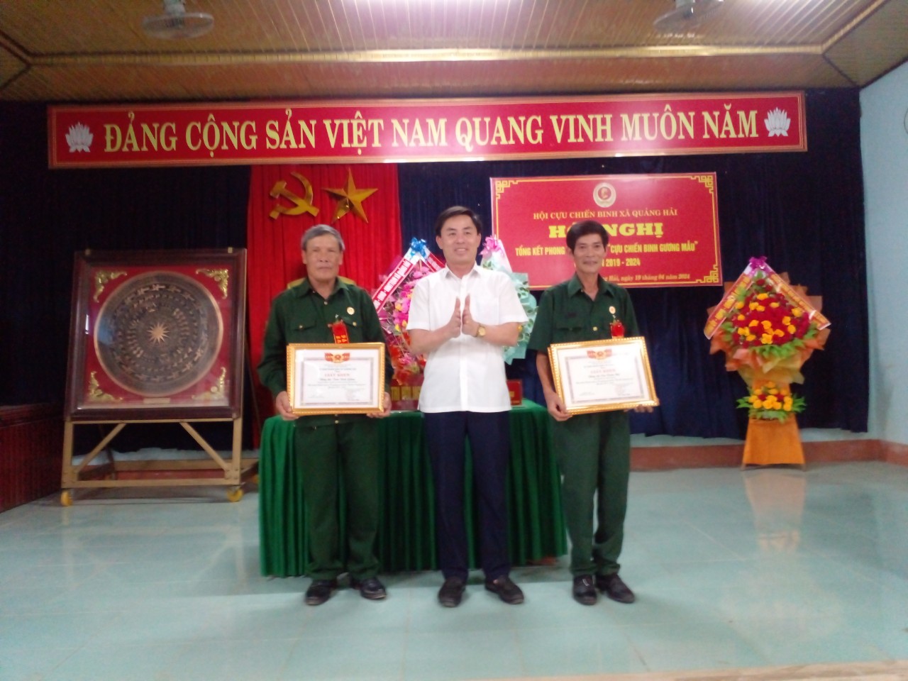 Nhân dịp này, hội cựu chiến binh xã Quảng Hải đã biểu dương, khen thưởng nhiều cá nhân có thành tích xuất sắc trong phong trào thi đua “Cựu chiến binh gương mẫu" giai đoạn 2019 –2024.