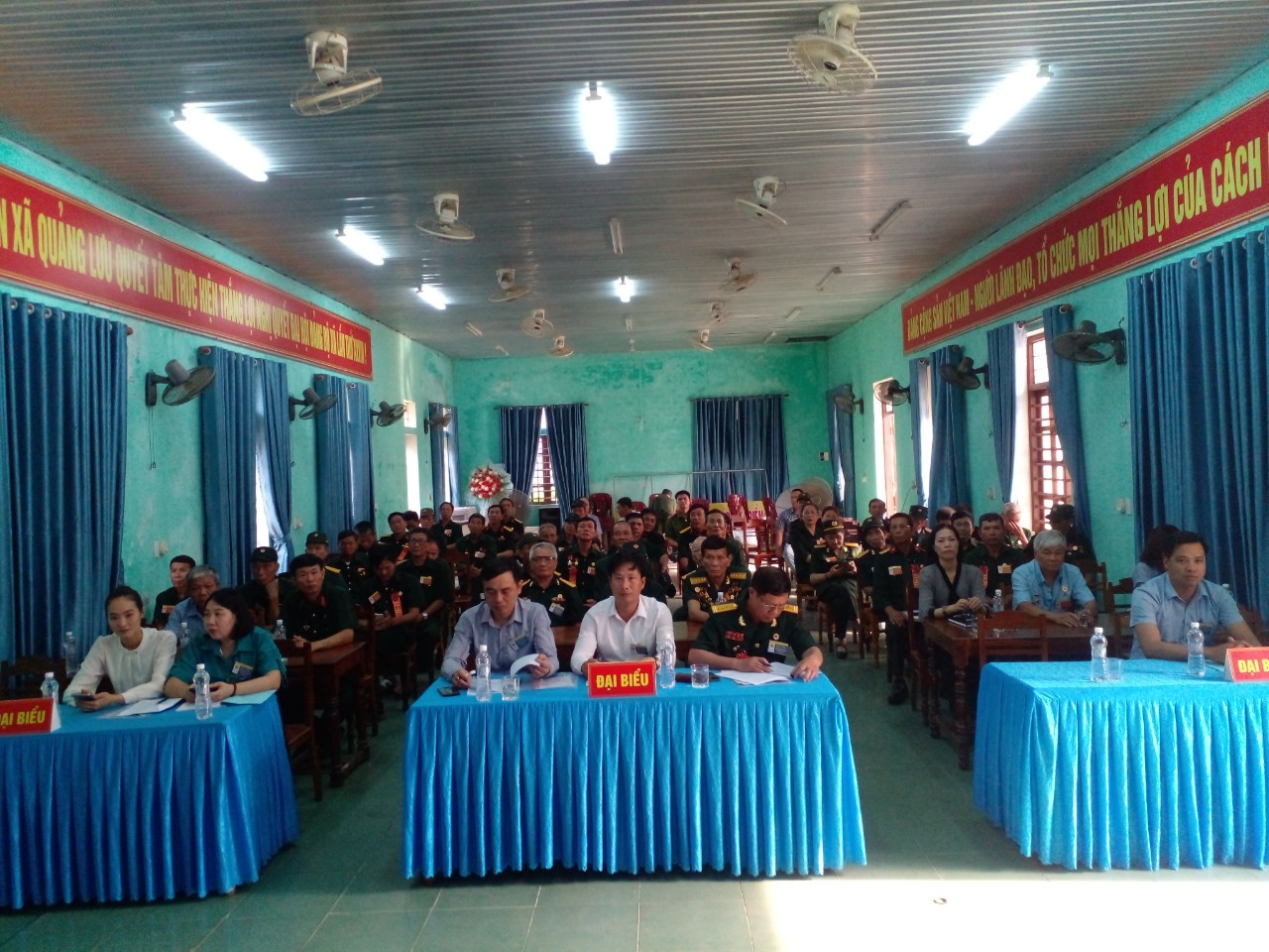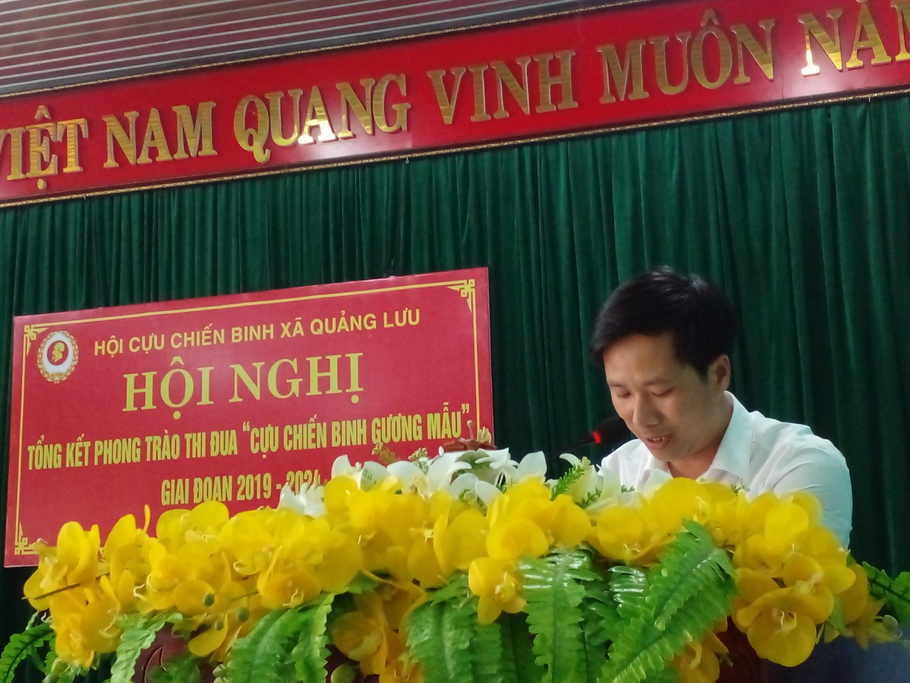 Ông Lê Thanh Tùng – Phó Bí thư thường trực Đảng ủy xã, phát biểu tại hội nghị: “Biểu dương những thành tích đạt được của Hội CCB xã Quảng Lưu trong 5 năm qua. Đồng thời, đề nghị cán bộ và hội viên tiếp tục giữ vững và phát huy truyền thống “Bộ đội Cụ Hồ”, vượt qua khó khăn, gương mẫu thực hiện các chủ trương của Đảng, chính sách pháp luật của Nhà nước; đi đầu trong việc giữ an ninh trật tự trên địa bàn xã và thực hiện các cuộc vận động, đặc biệt là đẩy mạnh việc học tập và làm theo tư tưởng, đạo đức, phong cách Hồ Chí Minh. Tham gia xây dựng Đảng, chính quyền, phong trào bảo vệ trật tự an toàn xã hội, an ninh thôn xóm; tăng cường giáo dục truyền thống cách mạng cho thế hệ trẻ; đổi mới nội dung phương thức họat động, xây dựng tổ chức Hội ngày càng vững mạnh”.