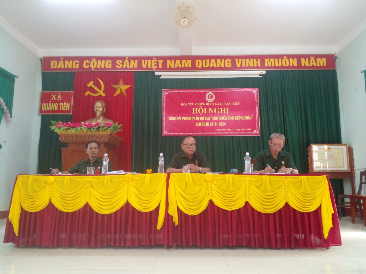 Giai đoạn 2019 – 2024 phong trào thi đua “Cựu chiến binh gương mẫu” được hội cựu chiến binh xã Quảng Tiên triển khai sâu rộng, gắn với thực hiện Chỉ thị 05-CT/TW của Bộ Chính trị về đẩy mạnh học tập và làm theo tư tưởng, đạo đức, phong cách Hồ Chí Minh. Qua đó giúp cán bộ, hội viên giữ vững và phát huy bản chất, tích cực tham gia xây dựng bảo vệ Đảng, chính quyền, thực hiện chủ trương chính sách của Đảng, pháp luật của Nhà nước.