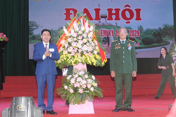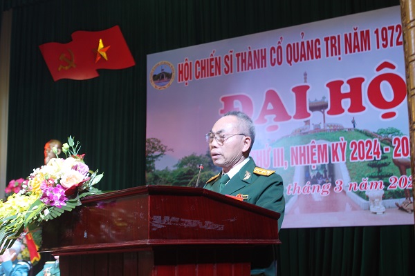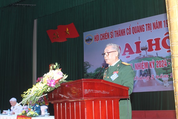 Chủ tịch Hội Chiến sĩ Thành cổ Quảng Trị năm 1972 tỉnh Nam Định Nguyễn Trung Sơn phát biểu, tặng hoa chúc mừng đại hội - Ảnh: Hồ Thanh
