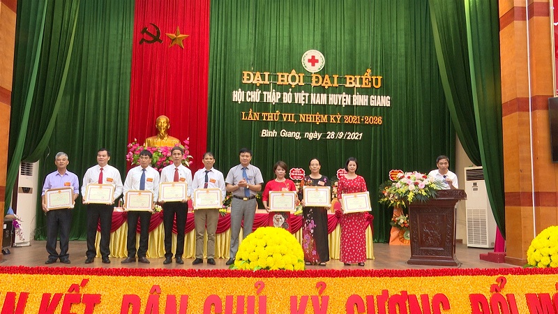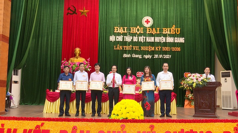 Hội Chữ thập đỏ tỉnh Hải Dương và Chủ tịch UBND huyện tặng giấy khen cho các tập thể. cá nhân có thành tích xuất sắc trong công tác Hội giai đoạn 2016 - 2021.