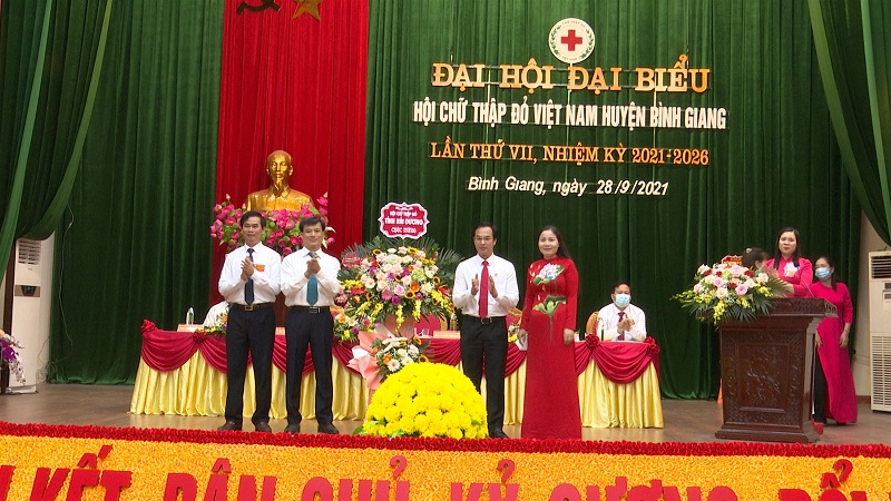 Hội Chữ thập đỏ tỉnh Hải Dương tặng hoa chúc mừng Đại hội.