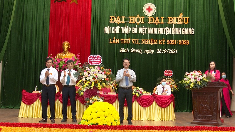 Huyện Ủy - HĐND - UBND huyện Bình Giang tặng hoa chúc mừng Đại hội thành công tốt đẹp.